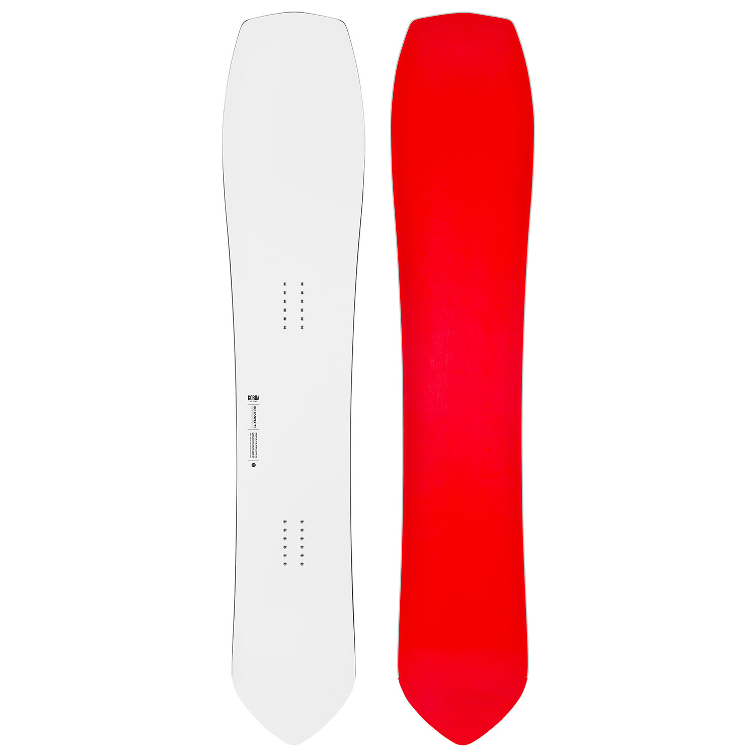The Otto is the closest to a twin shape board, that is made to be a fun carving board, that is not going to limit you if you want to ride in the park. It has the largest tail in the Korua line, with just a little bit of a stance setback.