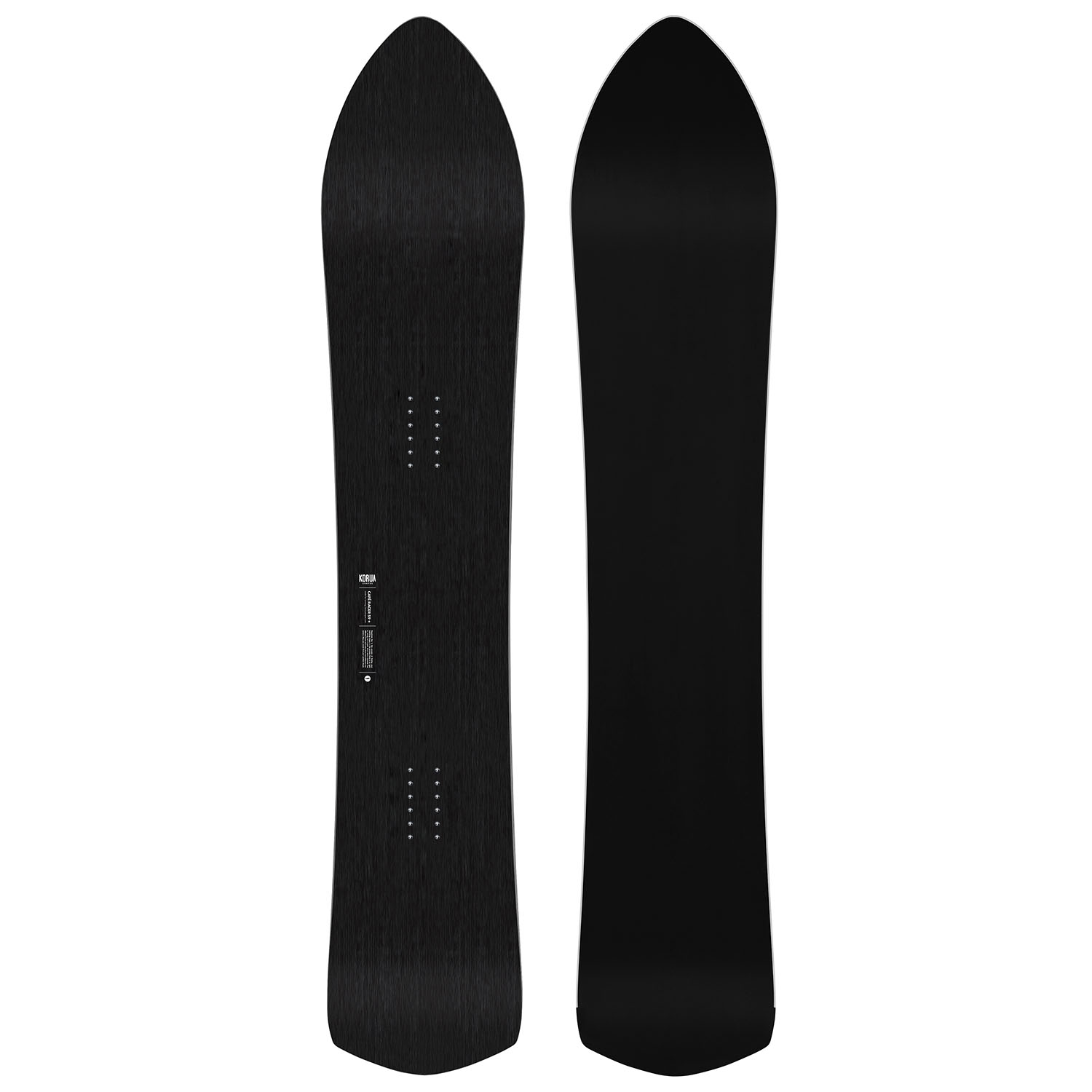 The Café Racer is a full camber softboot carving board, made with a tapered directional shape. The tail has a stiffer torsional flex, to get more power out of the end of a turn.
